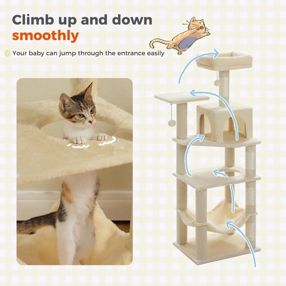 🐱 63.5″ Multi-Level Cat Tree Tower (Activity Center)