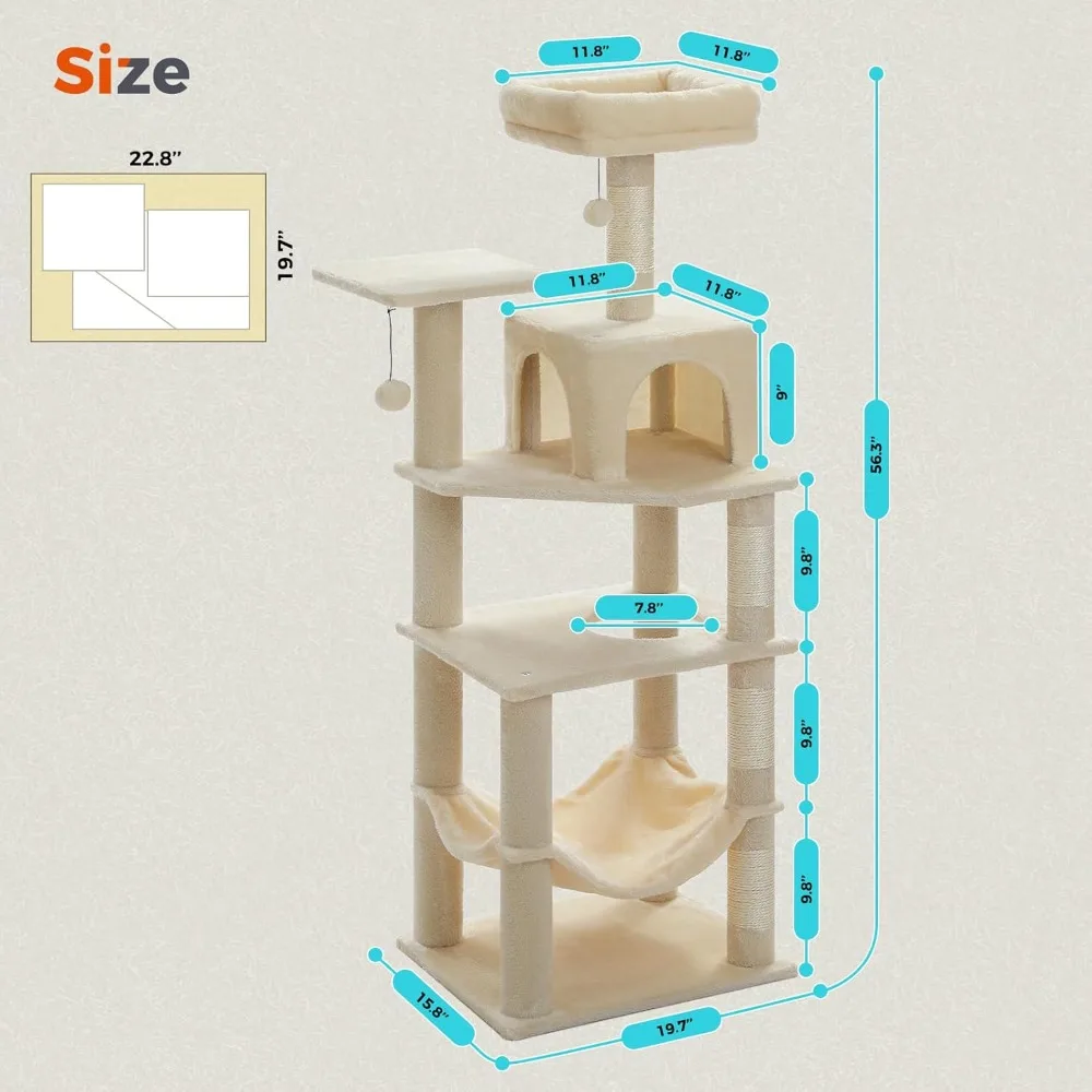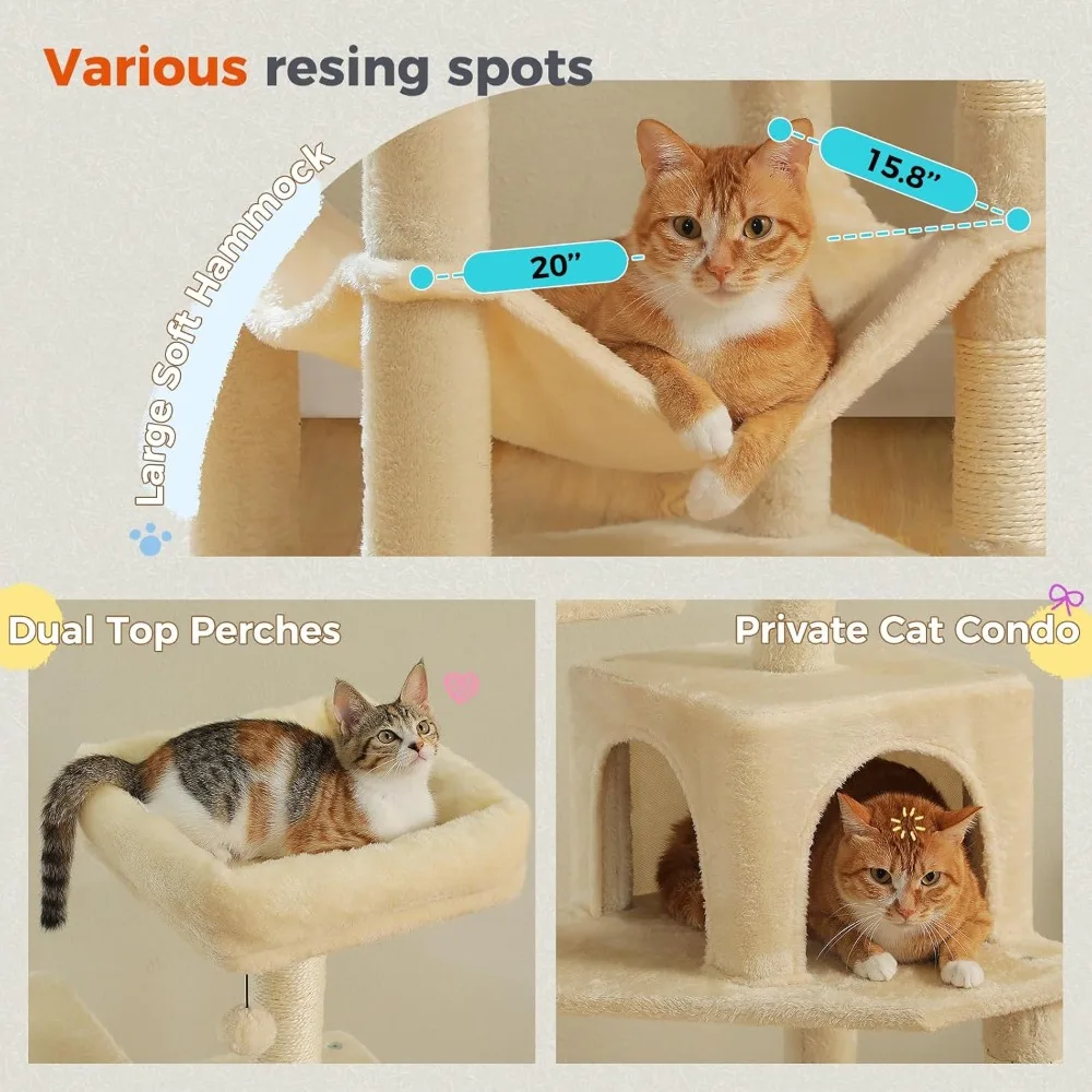 Multiple Resting Places to Choose: No more squabbles over space! This tower comes with a spacious condo, a wide hammock, and dual top perches—plenty of room for 3 or more cats to relax, play, or nap simultaneously. Each cat gets their own “private suite,” ensuring harmony in your furry family