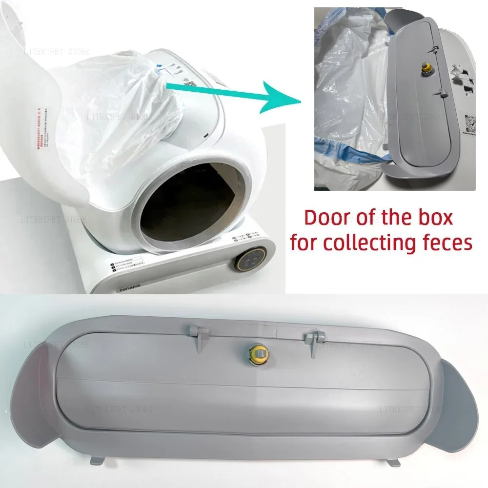 Features: Waste‑cap collecting capsule that sits under or near an automatic litter box to catch tracked feces or clumps. Often includes a tray or drawer for easy remova