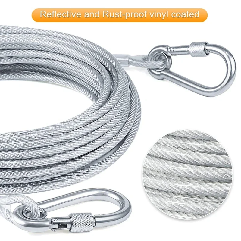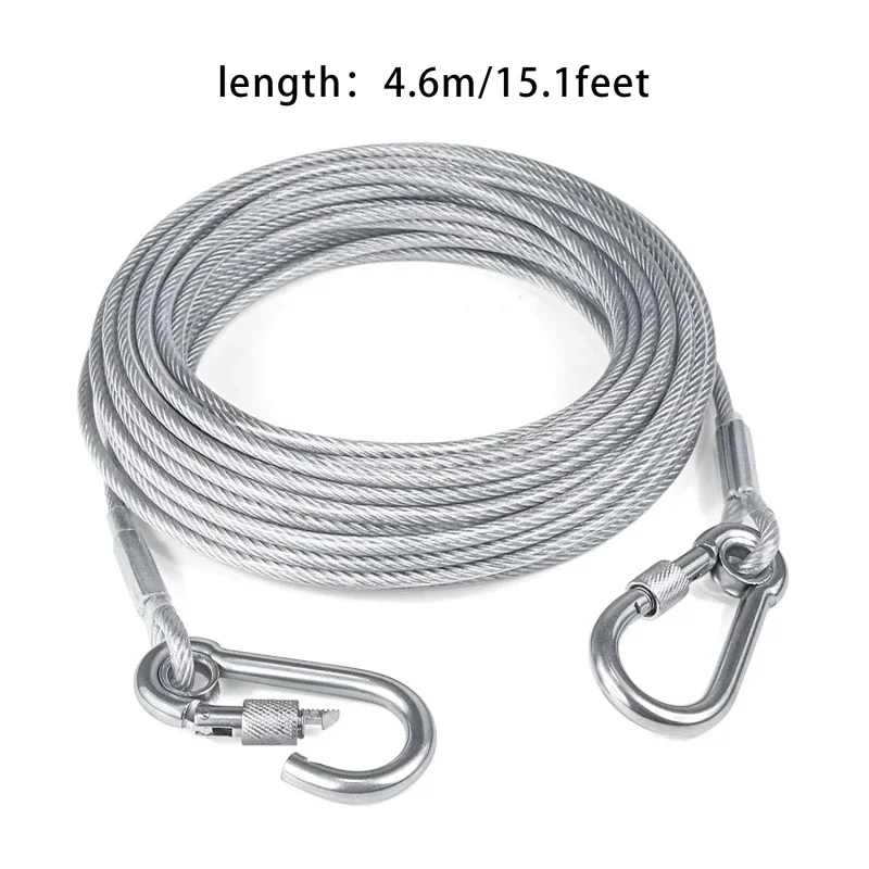 Secure your dog safely during outdoor activities with this double-headed tie-out cable leash. Made with strong steel wire and rust-resistant metal buckles, it’s designed for durability and long-lasting use.