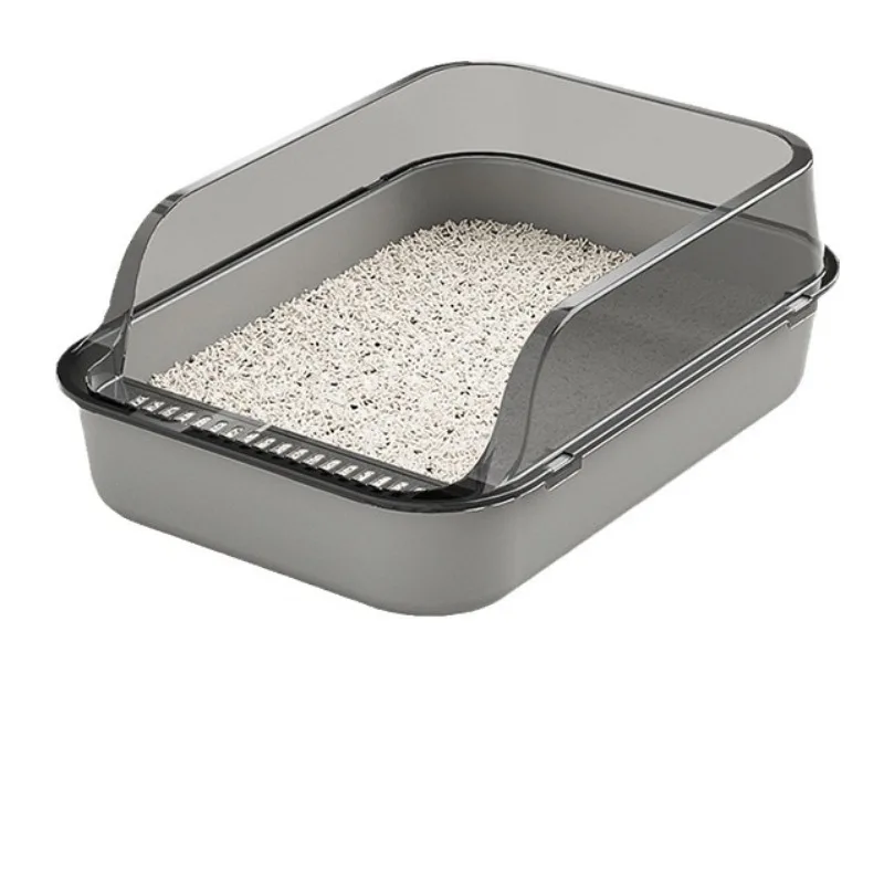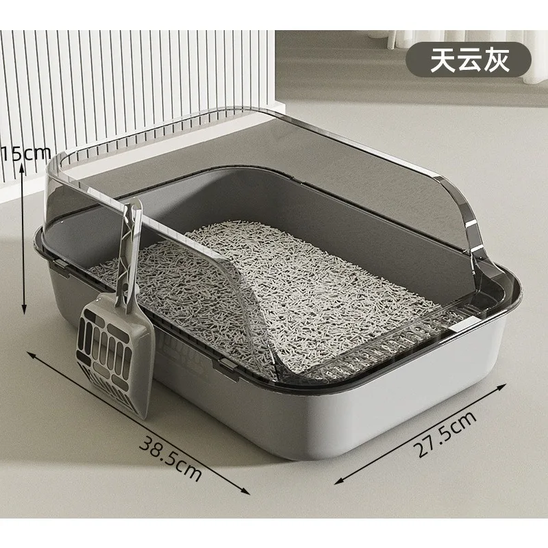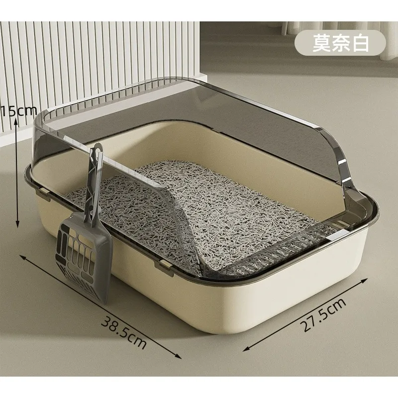 Semi-covered, anti-tracking cat litter boxes made of plastic, with removable scoops for easy-clean features and better odor/litter control — great for keeping your home cleaner and fresher: