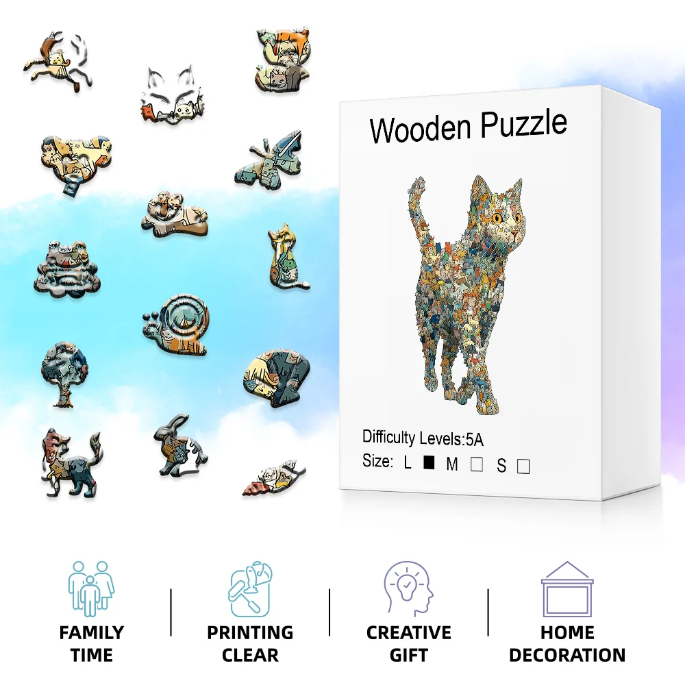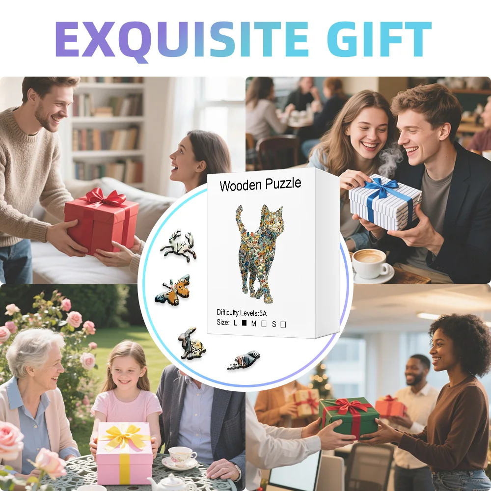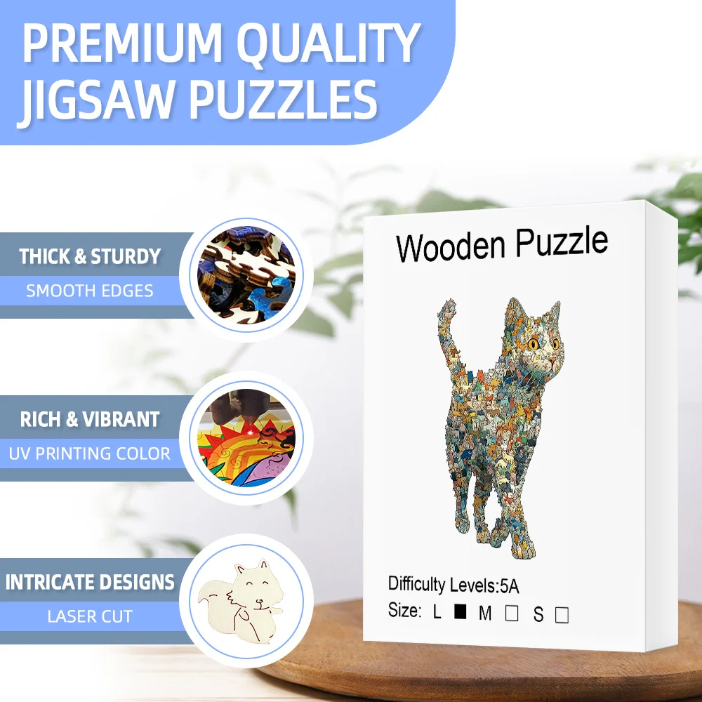 Enjoy hours of fun and challenge with this wooden cat jigsaw puzzle, designed for family entertainment and home décor. The puzzle features thick, sturdy pieces that fit together seamlessly for a satisfying experience. Vibrant colors make the finished design visually appealing and a charming decorative piece. Perfect for cat lovers, it provides both mental stimulation and creative engagement. Ideal for solo puzzling or group activity, it encourages focus, patience, and problem-solving skills. The durable wooden construction ensures long-lasting use and repeated enjoyment. Compact and easy to store, it can be displayed once completed or put away for future fun. Makes an exquisite gift for birthdays, holidays, or special occasions. Suitable for adults and older children, it’s both entertaining and educational. Bring creativity, fun, and feline charm into
